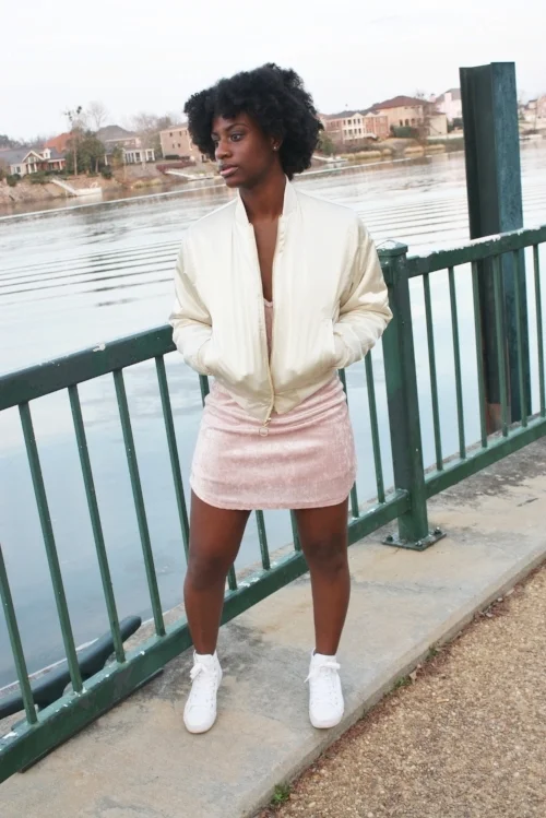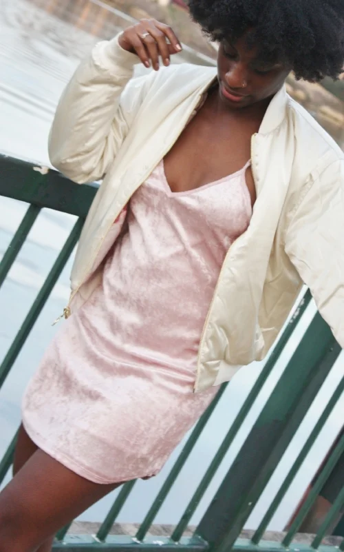Everything I'm wearing is one of my favorites. I'm far from a sneaker person but I wear these Tommy Hilfiger ones faithfully. I got lucky and found them at Ross a few months ago and we've been inseparable ever since. The shoe itself isn't all that special, so I think the reason I had to have them was because of my mini collection of Hilfiger hats. And by mini I mean three... so call it what you what. But the shoes are great whenever I just feel like chilling and they work well to "dress down" without really dressing down if that makes sense. Like I had so many different ideas of what I could pair with this velvet slip dress ($10, Bealls Outlet) whether it be booties and fishnets to sparkly pointed toe heels, and yet I feel like the sneakers gave the same effect. I didn't feel like I was compromising the look of the dress by not wearing heels is what I guess I'm trying to say. And I'm one of those people that feel like heels makes every outfit better so that says a lot about how I feel about these sneakers. Out of all of my "favorite" items in this look, the bomber is on a completely different level. I spotted it in TJ Maxx while Christmas shopping this past year and I couldn't say no. I want to thank layaway for that because otherwise I wouldn't have had a choice but to say no. It wasn't until after I had it for a few weeks that I realized it was reversible and that just made me go wild. Not that I regretted spending $60 on it, but essentially getting two bombers for that price put the frugal side of me on cloud nine.