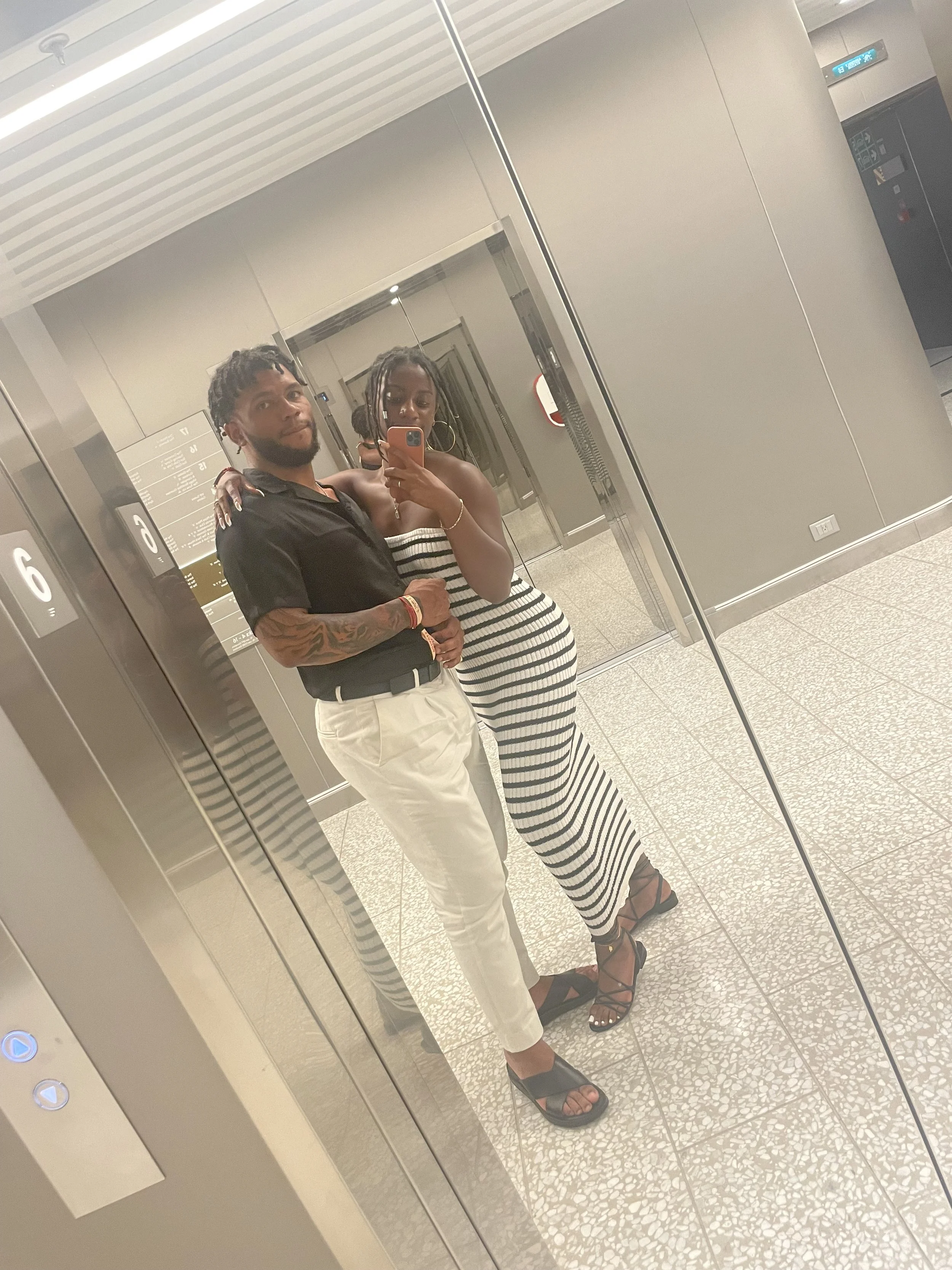 As for Dinner, I’m wearing a striped maxi dress from ShowPo and lace up sandals from Amazon. Deion is wearing a black, satin button up shirt from ASOS, white pants from Express, and the black sandals from Amazon that I linked under day 2.