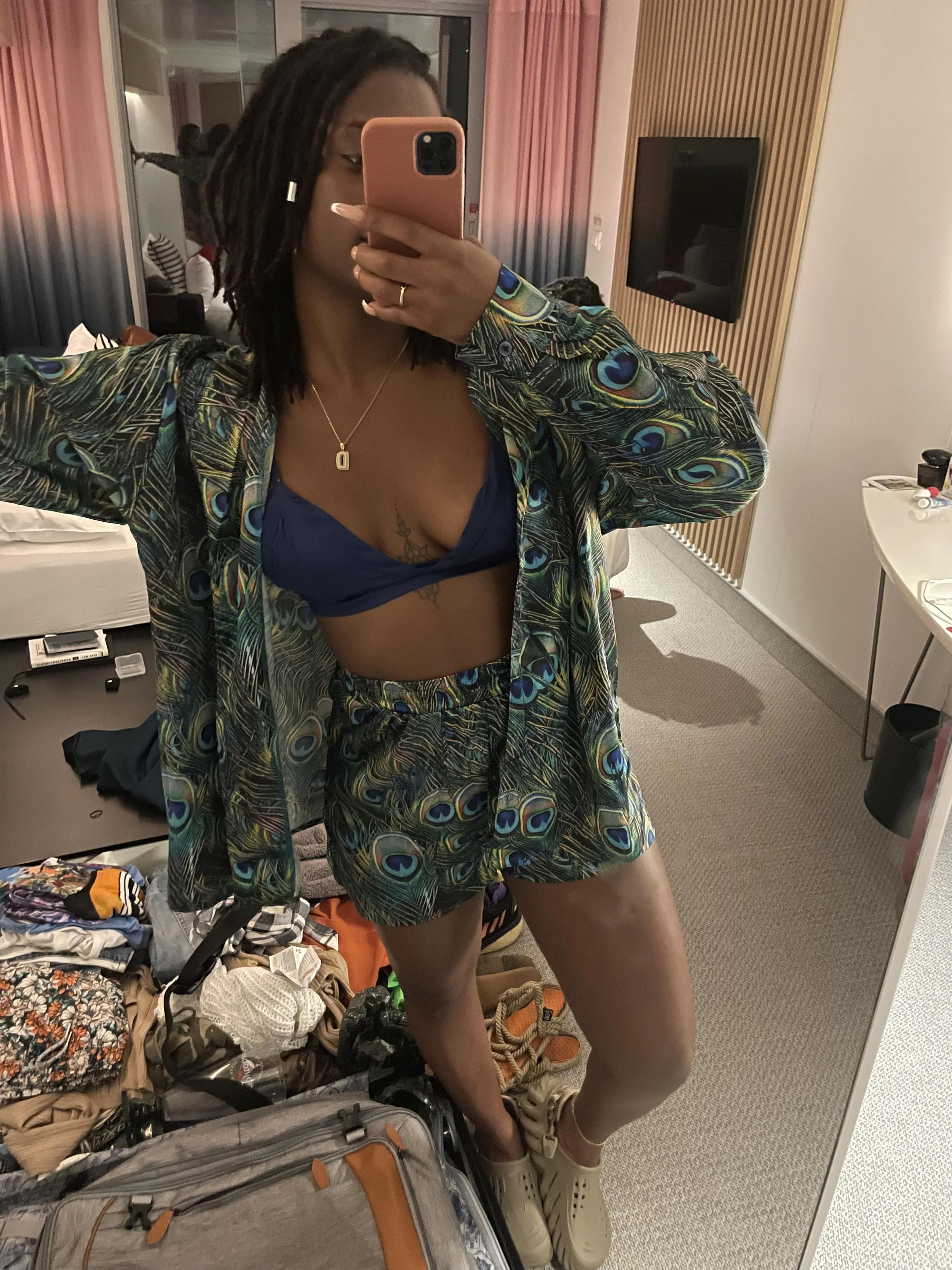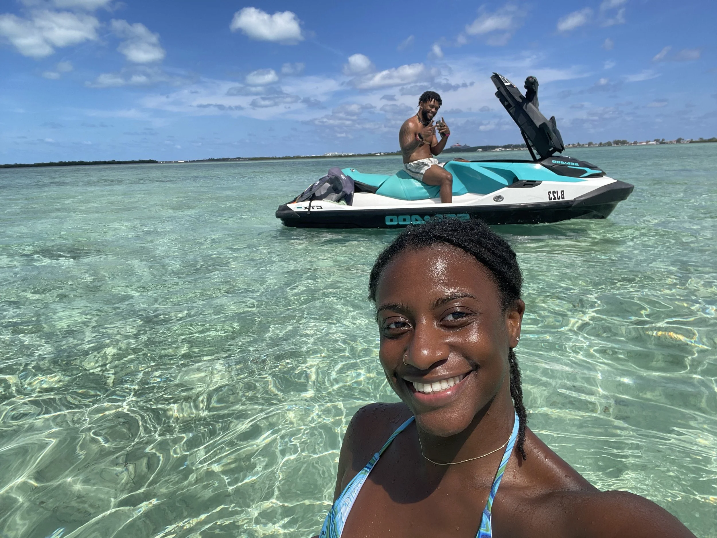 The last full day of the cruise was also one of my favorites. We jet skied in the Bahamas and honestly just played in the waves like kids. Of each country we visited, the water here was definitely the most beautiful. It was also enjoyable because Virgin Voyages owned this beach club, so we didn’t have to share the space with people from other cruise lines or be bothered by a bunch of people trying to sell us stuff like we experienced in Costa Maya. This bikini was bought from Temu, and it came with a pair of matching shorts that I put on as we were leaving the ship and once it was time to go back.