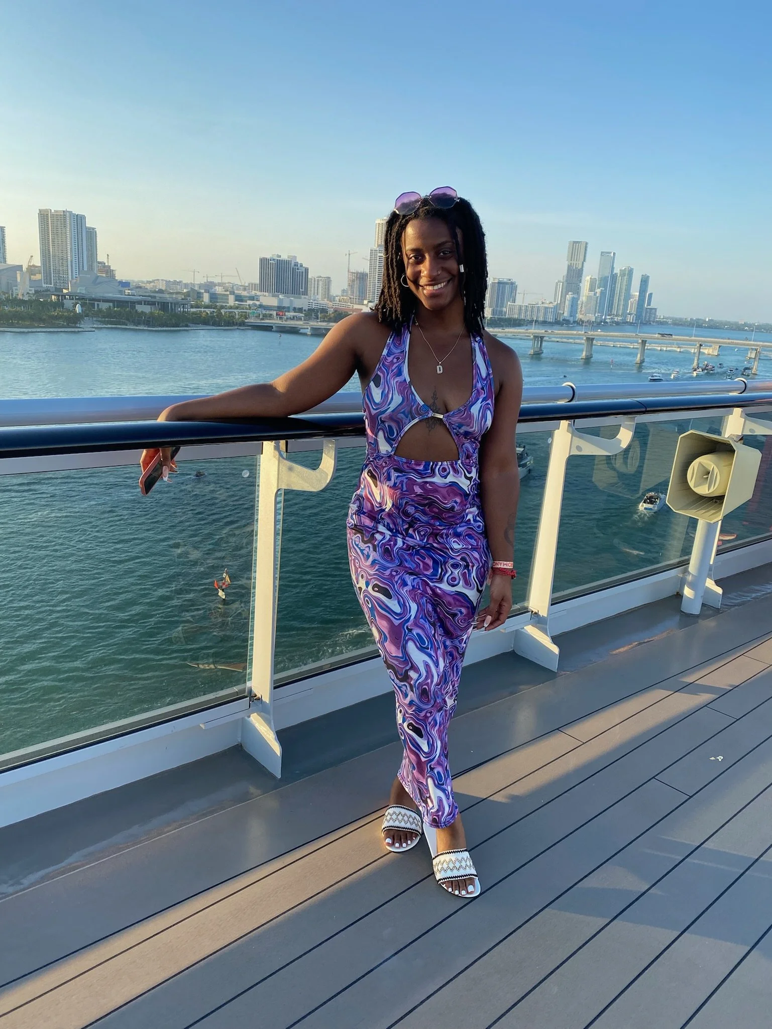 We had to be off of the ship by 9:30, so I grabbed breakfast, which happened to be Avocado toast and a bowl of Miso Udon because it was absolute fire. I didn’t get any pictures of what we wore off of the ship, but we both had on matching sets from Temu. My post-vacation blues were setting in because it hit me that we were flying into Asheville, which was a whole ass 40 degrees cooler than it was in Fort Lauderdale/Miami, so I ended up changing once we got to the airport.
