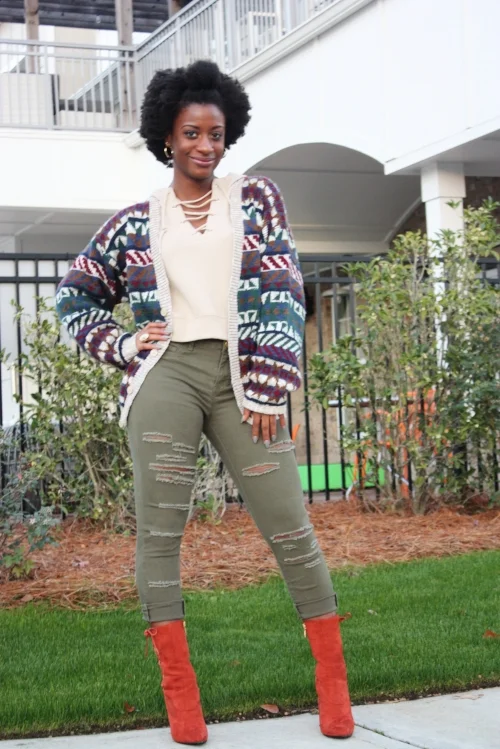 Alright, so I went to a party Saturday night and this outfit was the chosen one. I truly wish I would've waited to wear it for another occasion because it deserved to be seen by better people, but that's okay. All that matters is it was seen and I was definitely feeling myself. With that being said, the first thing I want to talk about is the cardigan that I put over the hoodie. It wasn't apart of my original outfit plan, but since the weather is actually matching the season now, I had to layer up a bit. It surprisingly worked out really well with the color scheme of this look so maybe it was destined to be worn after all. I'm not going to lie, I did steal if from my boyfriend after I bought it for him a few years back, but I put it to use way more than he did so it should've been in my closet from the get go. I believe I got it from eBay so I'm pretty sure it was less than $10. The cropped hoodie, on the other hand, was a bit more on the expensive side. It came from PacSun so y'all already know it's going to be overpriced. I paid thirty something for it and that was with a 25% discount. That may be right in some of y'all's price range, but if you don't already know, I'm cheap, so when anything is over $20 I really have an inner debate with myself on whether I need it or not. This particular day I honestly just felt like spending money so I figured I'd treat myself; I ended up having buyer's remorse right afterwards LMAO. But the olive green pants I'm wearing are from Charlotte Russe. They were originally $29.99, but I worked there at the time so all employees got a 40% discount on their purchases. When I tell y'all I took FULL advantage of that discount the three months I worked there, it was literally heaven. I also didn't buy them in the distressed condition; I did that part myself the night before the party. I did a little extra this time around with the holes than I normally do, but they turned out a lot better than I expected so that's a win for me for 2017. NOW, let's talk booties. I saved these babies for last because I wanted to end this post on the aspect that MADE this outfit. I purchased them from Wetseal during their Black Friday sale so I got them for $23 instead of $40. I love everything about these shoes from the color, to the cylinder block heel, and then the lace detail on the side. They were less comfortable than I expected, but if I had a chance to pair this outfit with another pair of shoes I absolutely would not. I'd go through being on my feet in these for the duration of another party all over again if I had to. Life is short, so why not wear uncomfortable shoes?