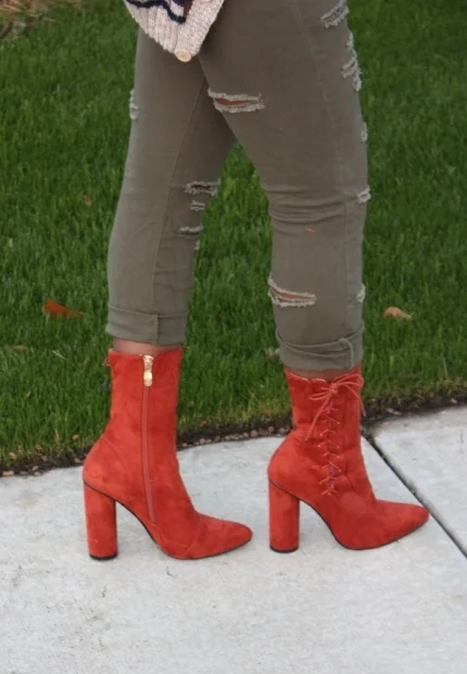Like, God Karen, you are so stupid. Don't disrespect the rust booties by calling them orange. My alter ego, Dayonce, would have said something like that, but personally, I'd let the imaginary person get away with calling them orange. I'm not one to let my diva side show to the public. I also, very often, say *flips weave* because I would enjoy having flippable hair for those occasional diva moments *deep sigh*, but I'll just keep managing this thick load hair that's currently on top of my head. But don't you guys think it's funny how we've veered from identifying items by a standard color to these completely off the wall colors. There's periwinkle, aquamarine, mahogany, maroon, seafoam... and the list just keeps going. Like who came up with these? I mean, I'm not complaining, it's actually pretty great that I can go into a store and ask if they have a blush-colored shirt. That color is really growing on me now that I mention it. But we'll talk about that another day. I honestly just want to focus on these booties I'm wearing because they're in the running for my favorite pair of shoes right now.