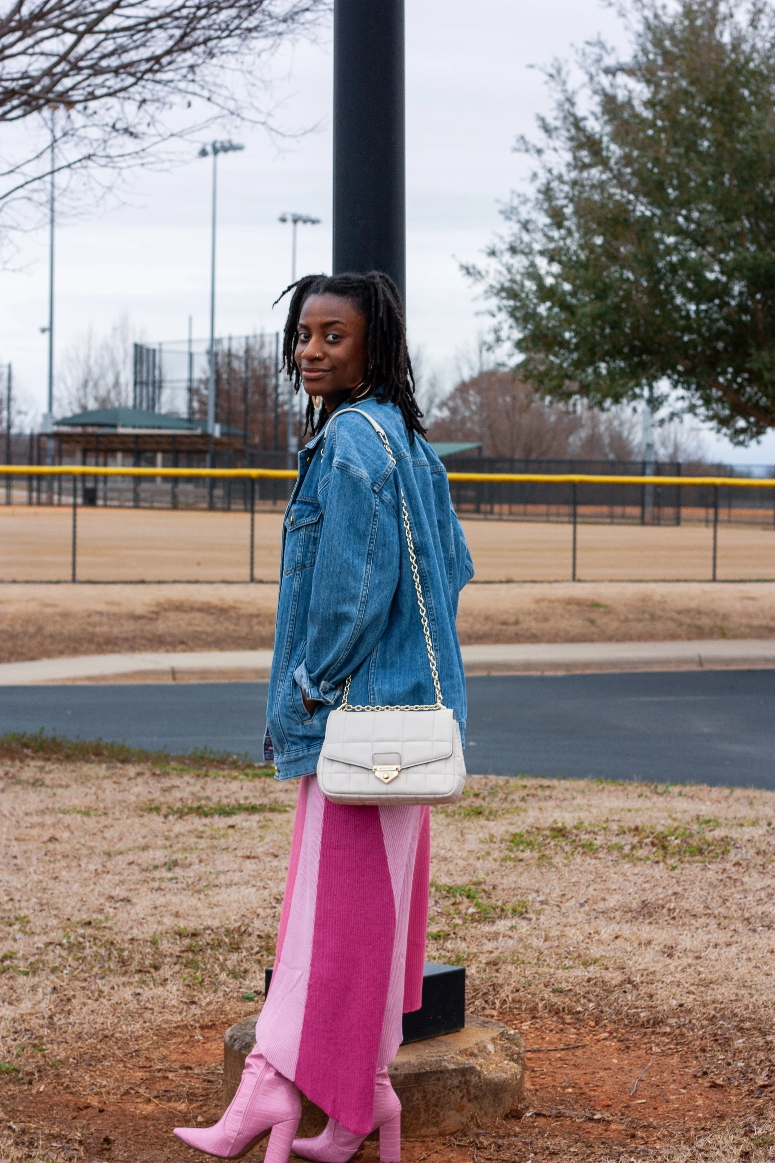 I’ve been feeling wearing long boots with midi/maxi length skirts and dresses lately. Considering these calf boots from EGO were the only ones that I have that would go with the dress, the decision of what shoes to wear were clear from the jump. It’s kind of funny because they were an impulse buy on a random night that I told Deion I wanted a pink pair of boots.