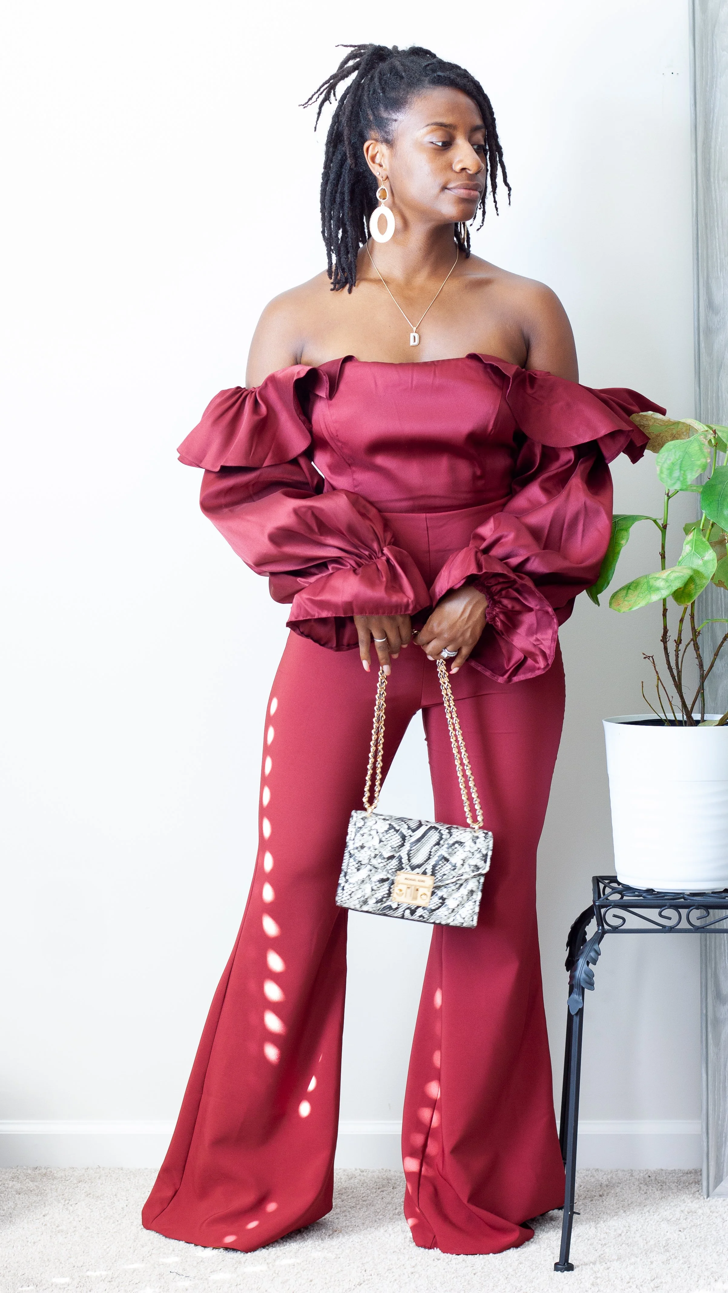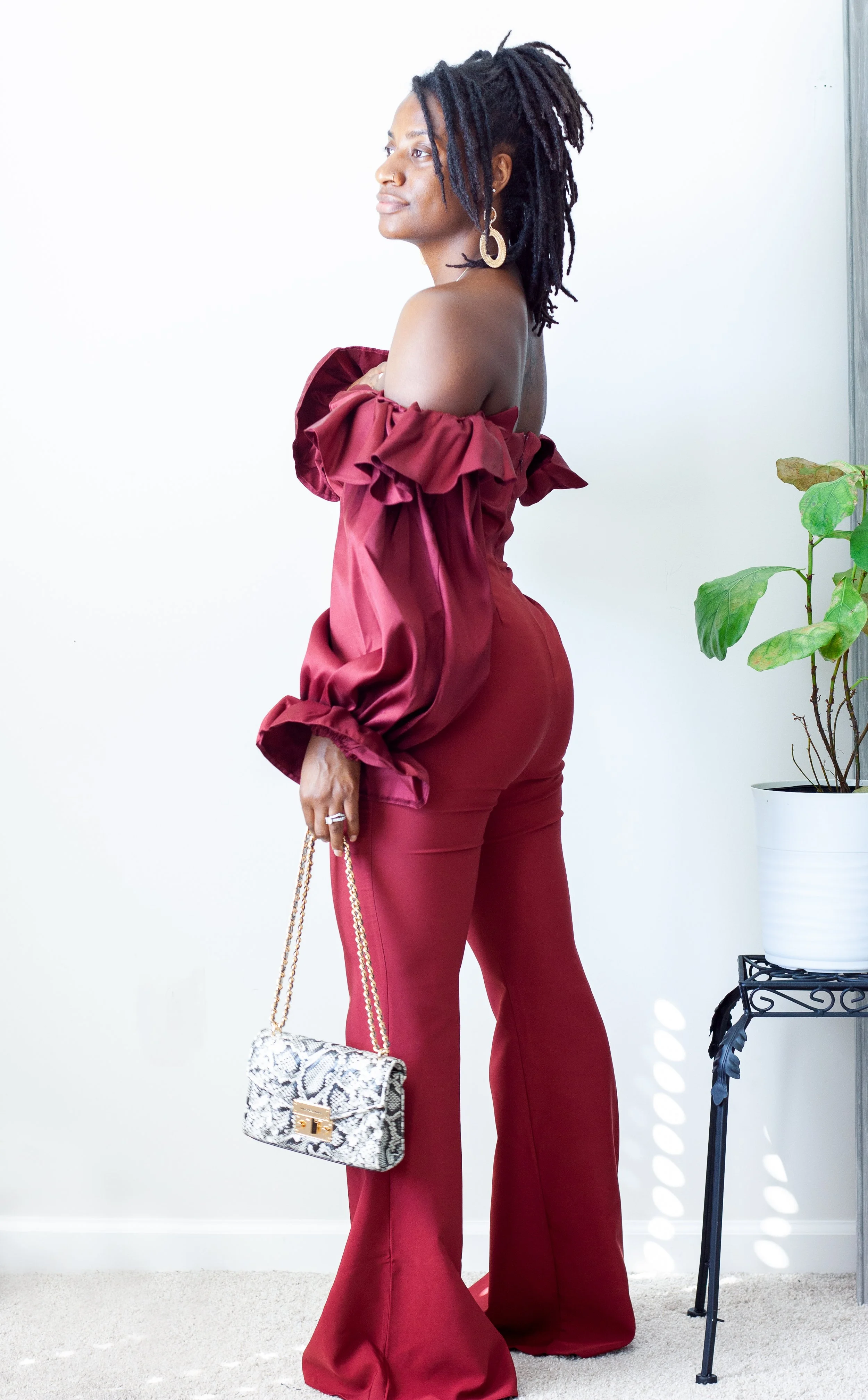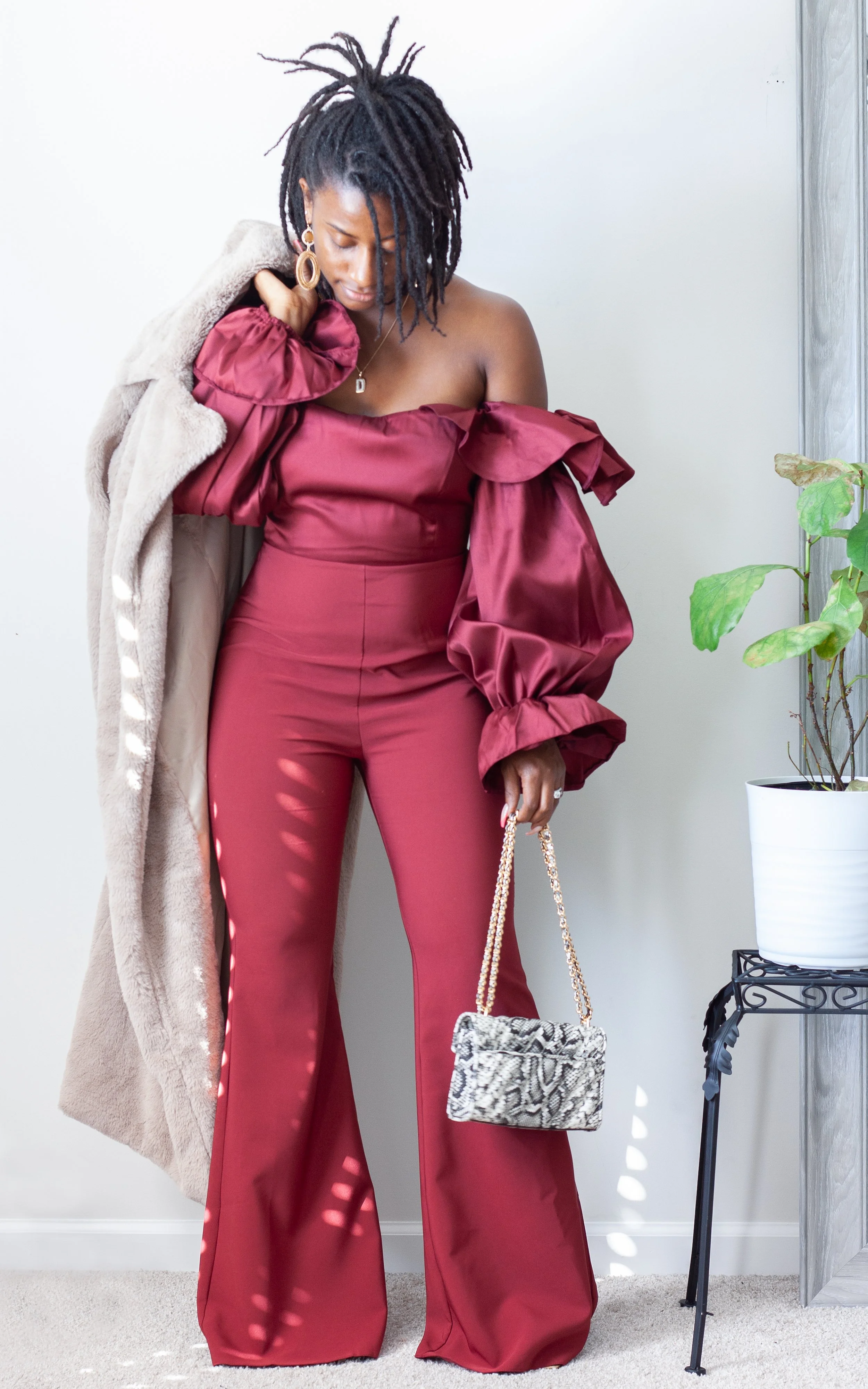 This jumpsuit is doing it for me. Almost as easy as putting on a dress but just barely missing the mark. It’s the one you put on when the event is all about you, because it’s definitely going to turn some heads. And the color? Perfection. Fine as wine if you ask me.